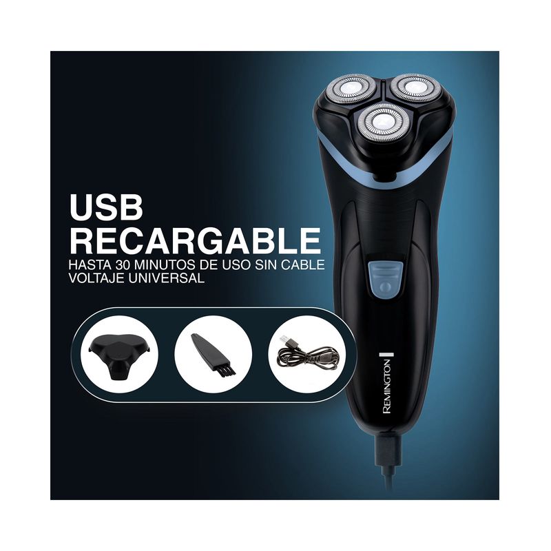 Consigue un afeitado perfecto con la Afeitadora Rotativa Remington Style Series R1. Sus cuchillas flotantes de acero inoxidable Dual Track aseguran una cobertura total y un corte preciso. Disfruta de 30 minutos de uso inalámbrico y carga en solo 8 horas. Úsala en seco o húmedo y obtén siempre los mejores resultados. Su cortador de patillas plegable y el indicador LED ofrecen máxima comodidad y precisión.