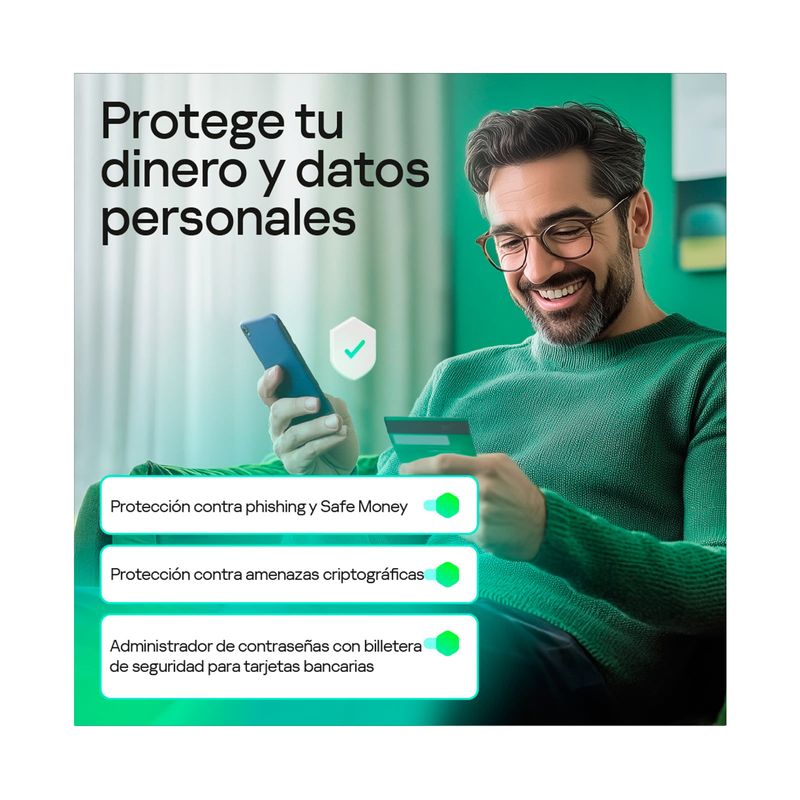 • Navegación y compras seguras: analiza sitios web, bloquea fraudes y protege tus datos financieros.
