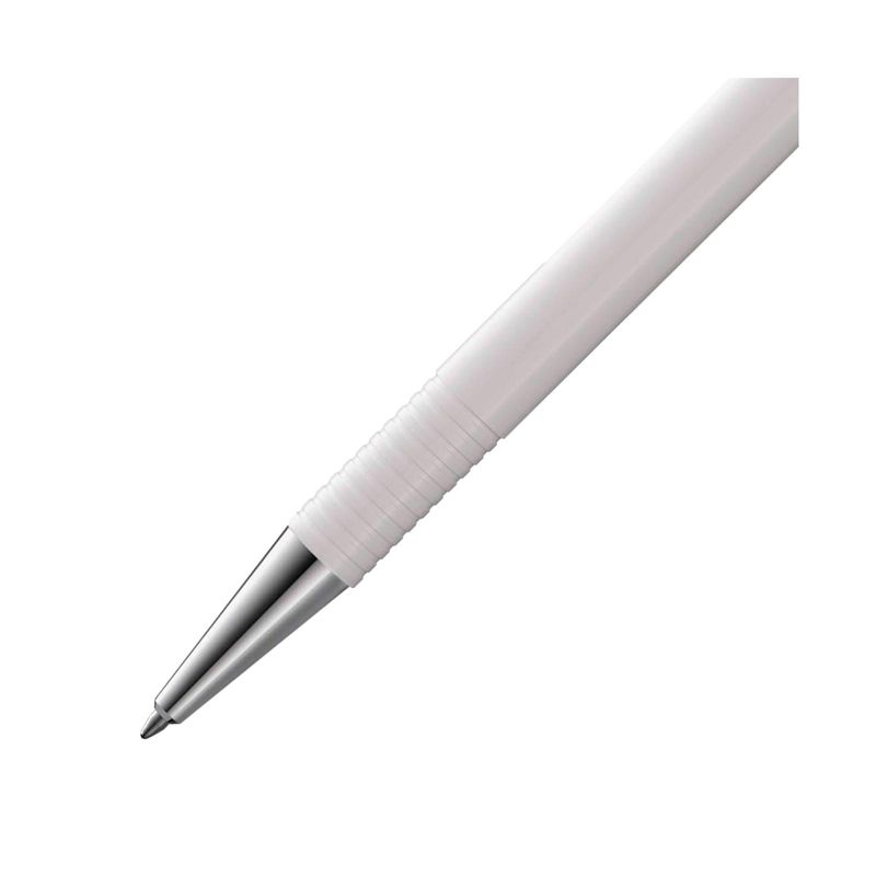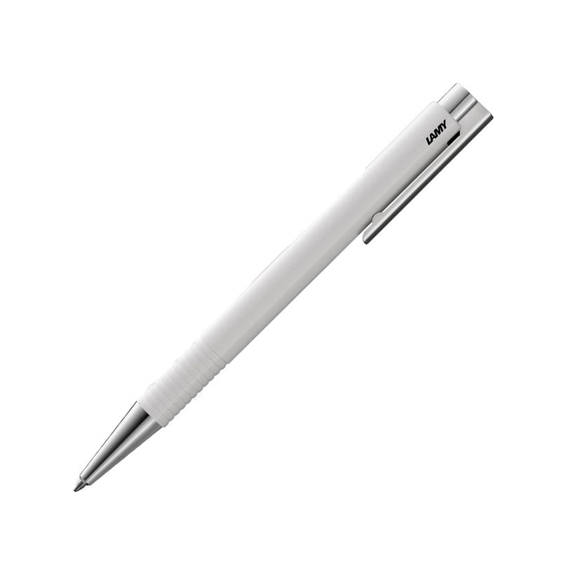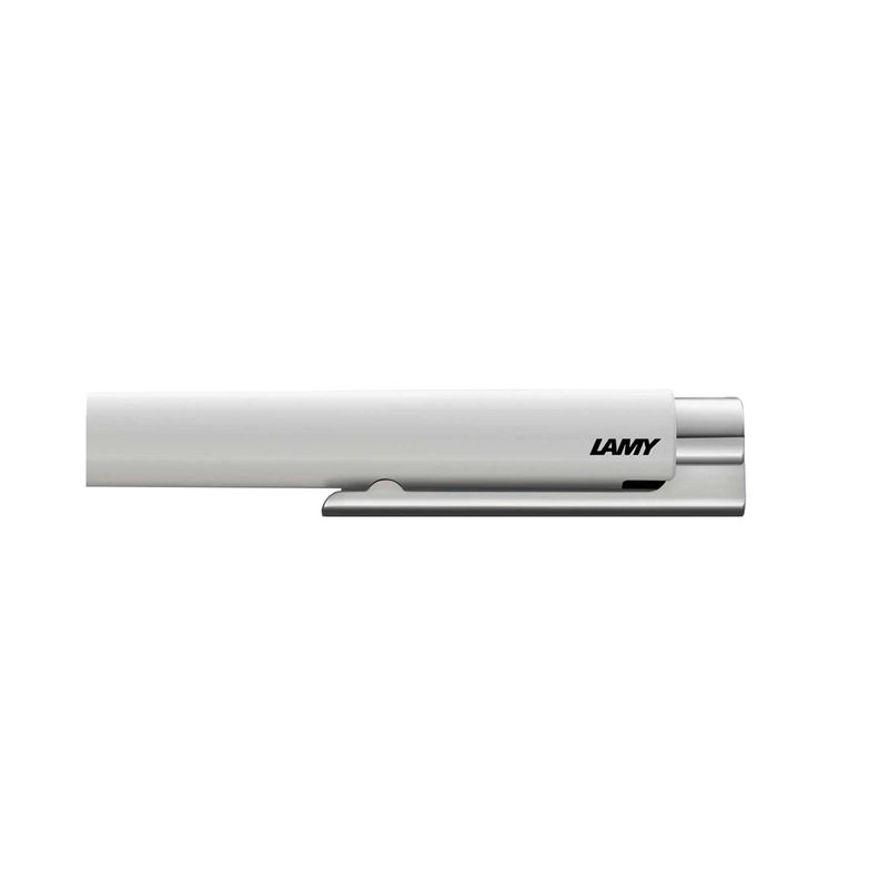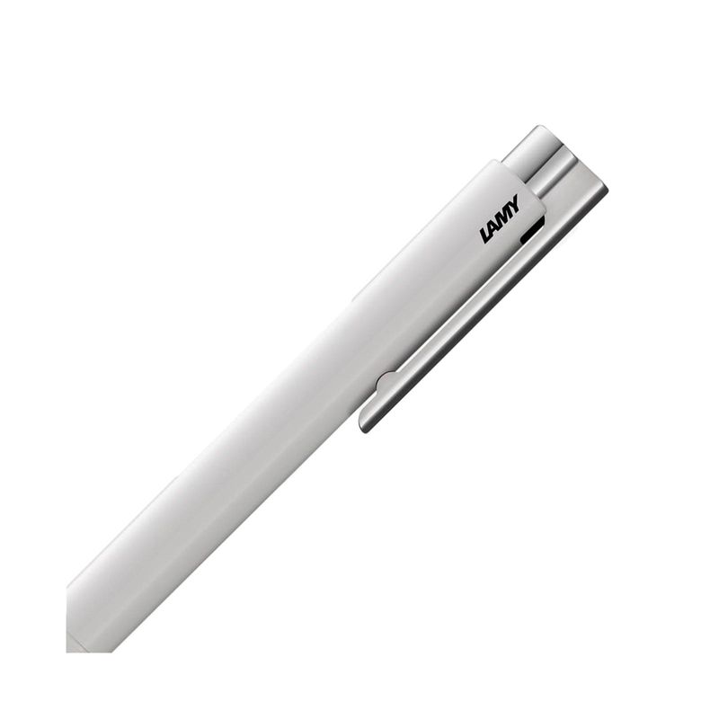 Bolígrafo de plástico, blanco brillante. Operado con muelle clip de acero integrado con cartucho grande M 16, azul M.