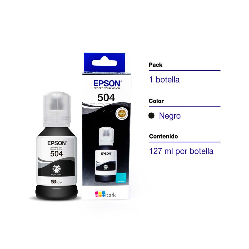 Botella de tinta Epson T504120-AL de 127 ml, color negro