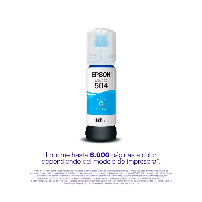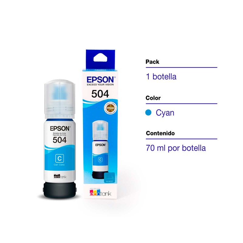 Botella de tinta Epson T504220-AL de 70 ml, color Cyan