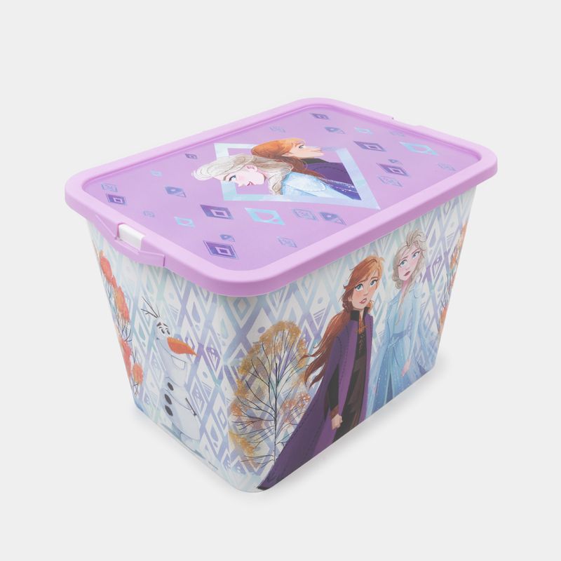 Ordena todos tus artículos personales con la variedad de productos y accesorios que encuentras en Panamericana Características • Diseño: frozen • Medidas del producto: 27.5 x 39 x 28.7 cm • Material: plástico • Con tapa • Capacidad: 23 litros