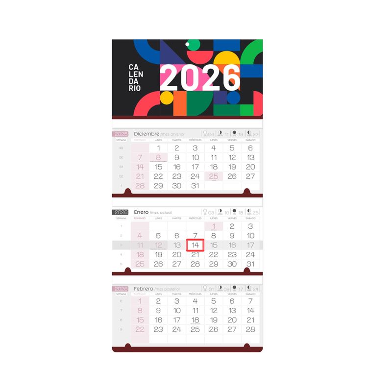 Para una clara organización y logística. Este calendario multifuncional de pared gracias a su diagramación permite una organización y visualización completa de las fechas de todo el año incluyendo mes anterior, actual y posterior.