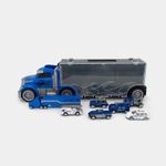 Camión transportador con 7 vehículos de policía