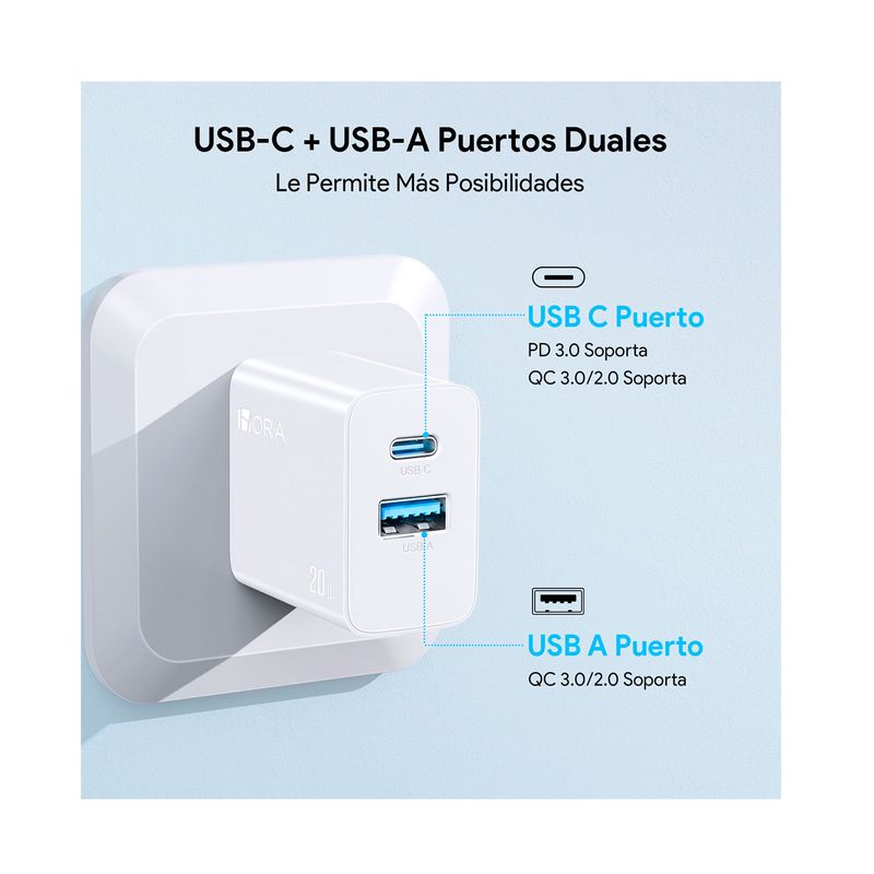 • Potencia de 3A / 20W QC 3.0 / PD 3.0