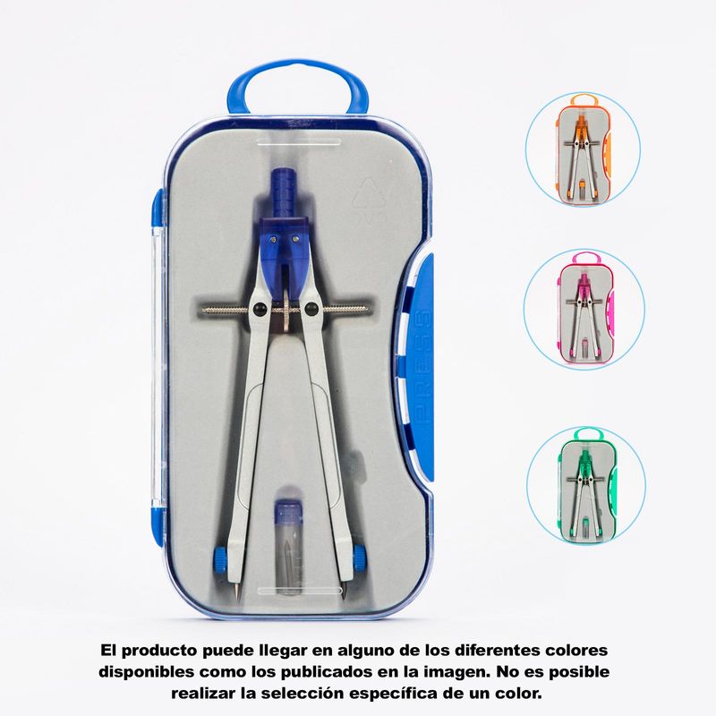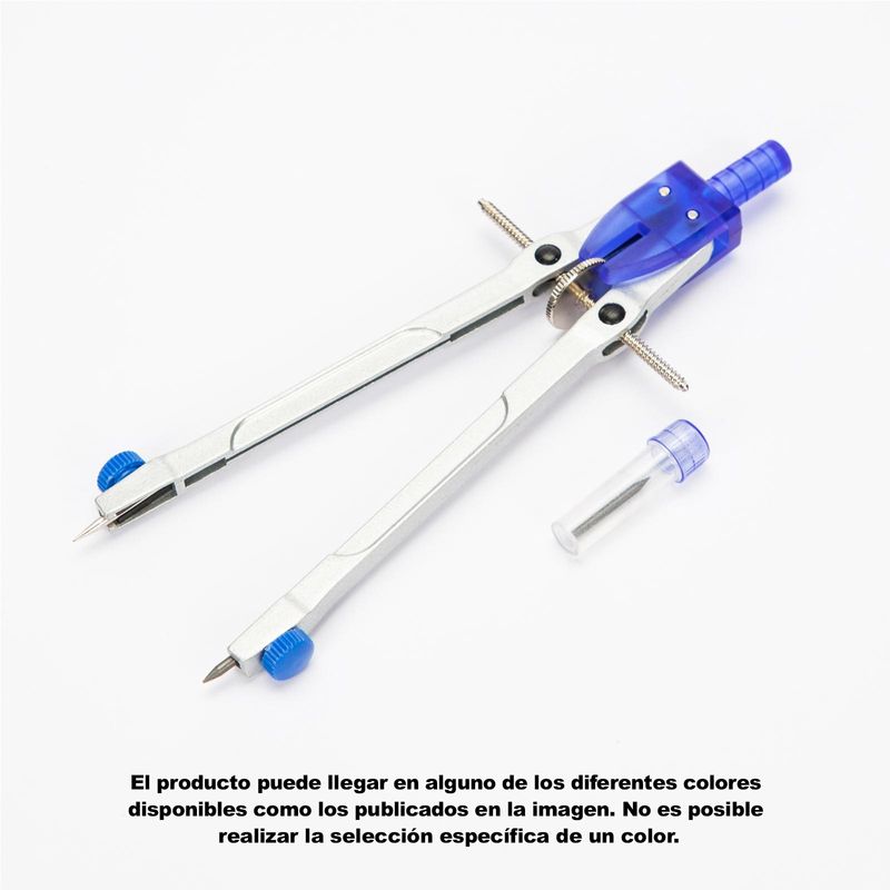 Compás de precisión con mina de repuesto. Medidas: 20 cm x 10 cm x 2.5 cm en empaque
