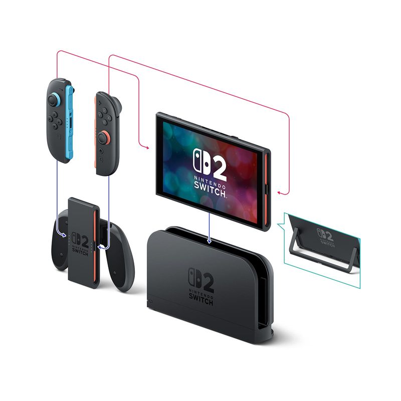 • Controles Joy-Con 2 que se acoplan magnéticamente y facilitan el control por mouse en juegos compatibles.