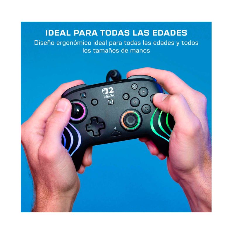 El control de juego RGB con cable Turtle Beach Afterglow Wave para Nintendo Switch 2 ofrece una experiencia visual y de control que transforma cada partida. Sus ocho zonas de iluminación personalizable permiten expresar tu estilo mientras los joysticks con efecto Hall brindan precisión constante y mayor resistencia al uso. El diseño ergonómico con agarres texturizados asegura comodidad prolongada y los botones traseros asignables mejoran la respuesta en momentos decisivos. Juega sin interrupciones gracias a su conexión directa y domina cada desafío. Hazlo parte de tu equipo hoy mismo.