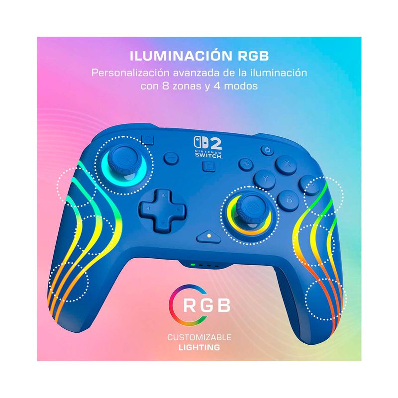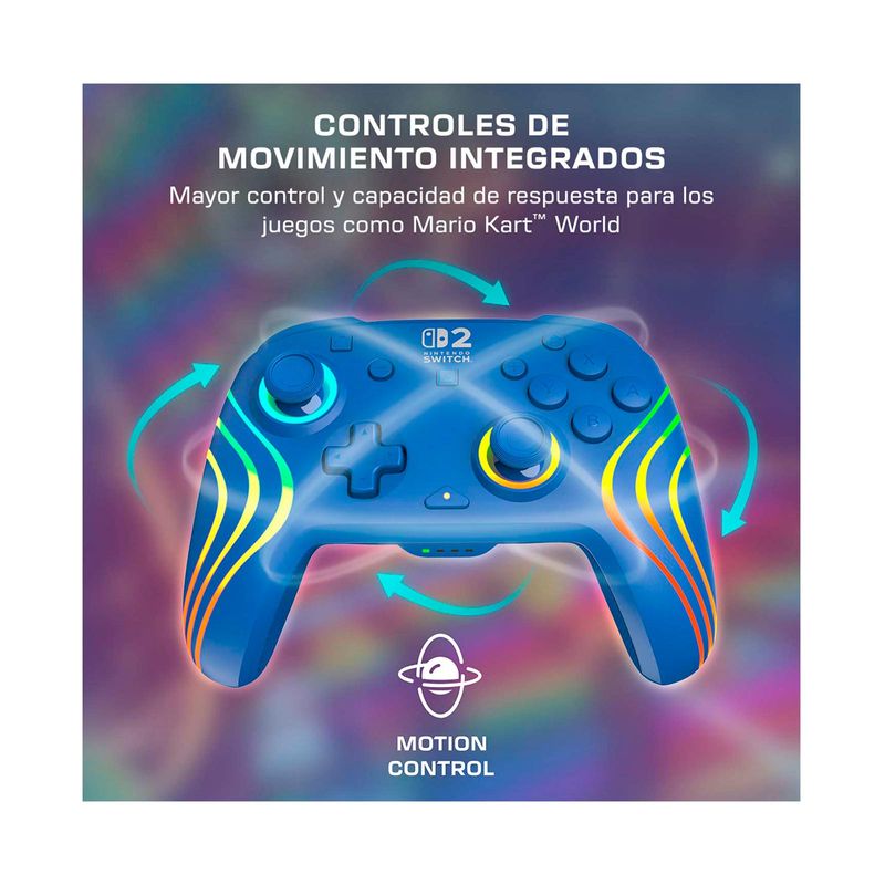 Ilumina cada partida con el control RGB Afterglow Wave para Nintendo Switch 2, compatible con Nintendo Switch, Lite y modelo OLED. Sus ocho zonas de luz personalizable y sus cuatro modos crean ambientes llenos de emoción, desde un brillo suave hasta una explosión de color. Los mandos magnéticos entregan precisión, respuesta y gran duración, mientras los sensores de movimiento hacen cada acción más envolvente. Disfruta una conexión estable de hasta 9 metros de alcance, batería recargable con hasta 20 horas y botones traseros configurables para mayor dominio y comodidad. Vive el color en cada jugada y llévalo a casa hoy.