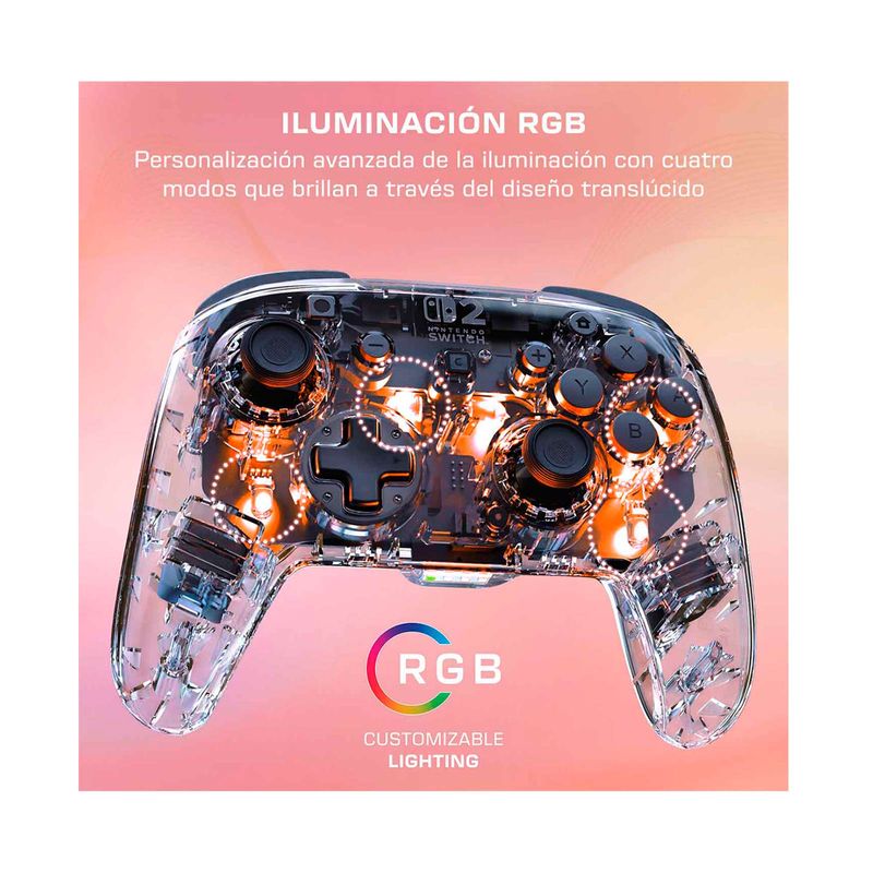 Ilumina cada partida con el control RGB Afterglow para Nintendo Switch 2 y compatibilidad con Switch, Lite y modelo OLED. Su carcasa traslúcida realza un show de luces prismáticas con brillo y colores ajustables en cuatro modos, creando un ambiente lleno de emoción. Los mandos magnéticos ofrecen movimientos precisos y excelente respuesta, mientras los sensores de movimiento aportan una experiencia más envolvente. Disfruta conexión estable hasta 9 metros, batería recargable con hasta 40 horas y botones traseros configurables para mayor control y comodidad. Vive la intensidad del juego y llévalo a casa hoy.