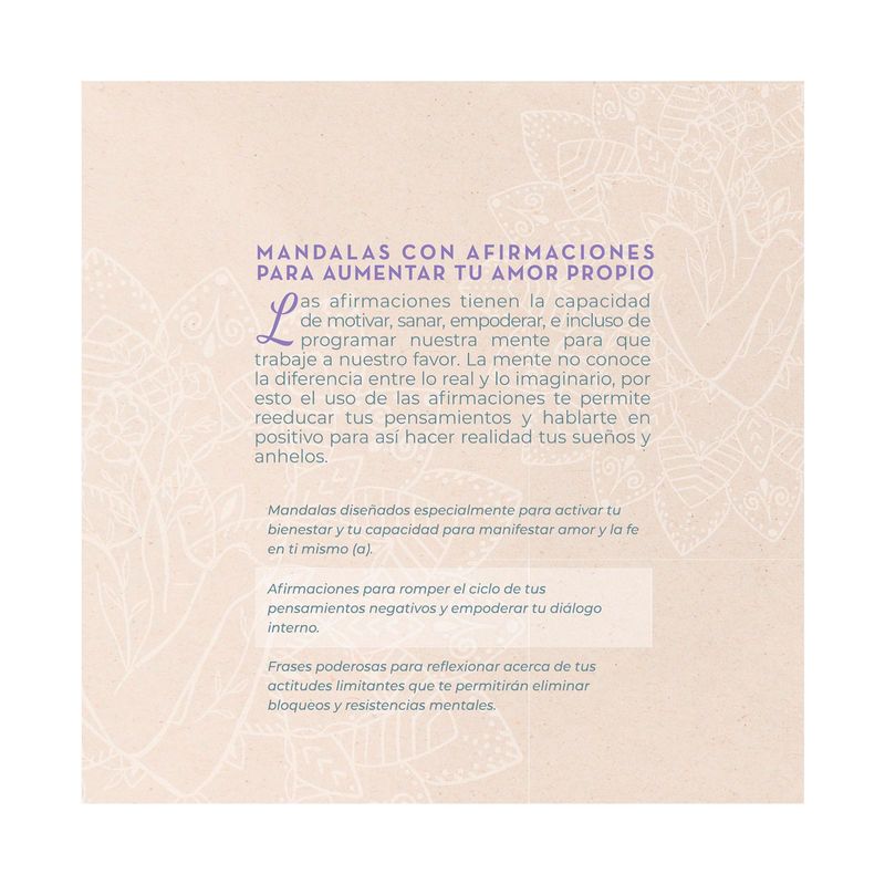 Las afirmaciones tienen la capacidad de motivar, sanar, empoderar, e incluso de programar nuestra mente para que trabaje a nuestro favor. La mente no conoce la diferencia entre lo real y lo imaginario, por esto el uso de las afirmaciones te permite reeducar tus pensamientos y hablarte en positivo para así hacer realidad tus sueños y anhelos. La mente no conoce la diferencia entre lo real y lo imaginario, por esto el uso de las afirmaciones te permite reeducar tus pensamientos y hablarte en positivo para así hacer realidad tus sueños y anhelos. Mandalas diseñados especialmente para activar tu bienestar y tu capacidad para manifestar amor y la fe en ti mismo (a). Frases poderosas para reflexionar acerca de tus actitudes limitantes que te permitirán eliminar bloqueos y resistencias mentales.