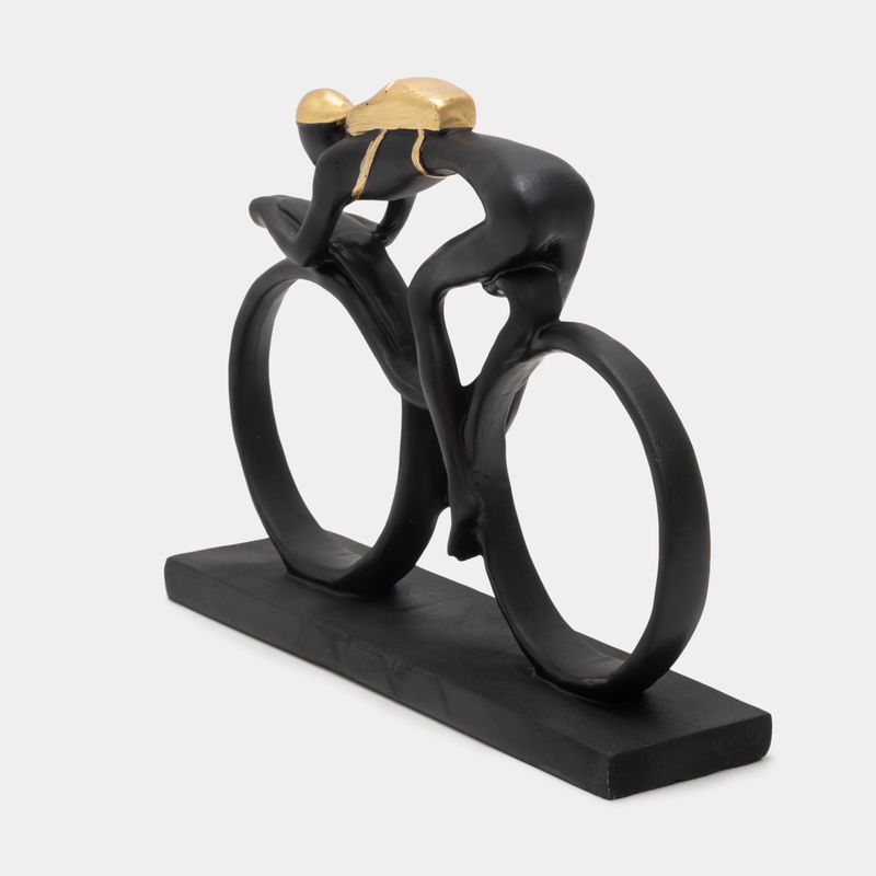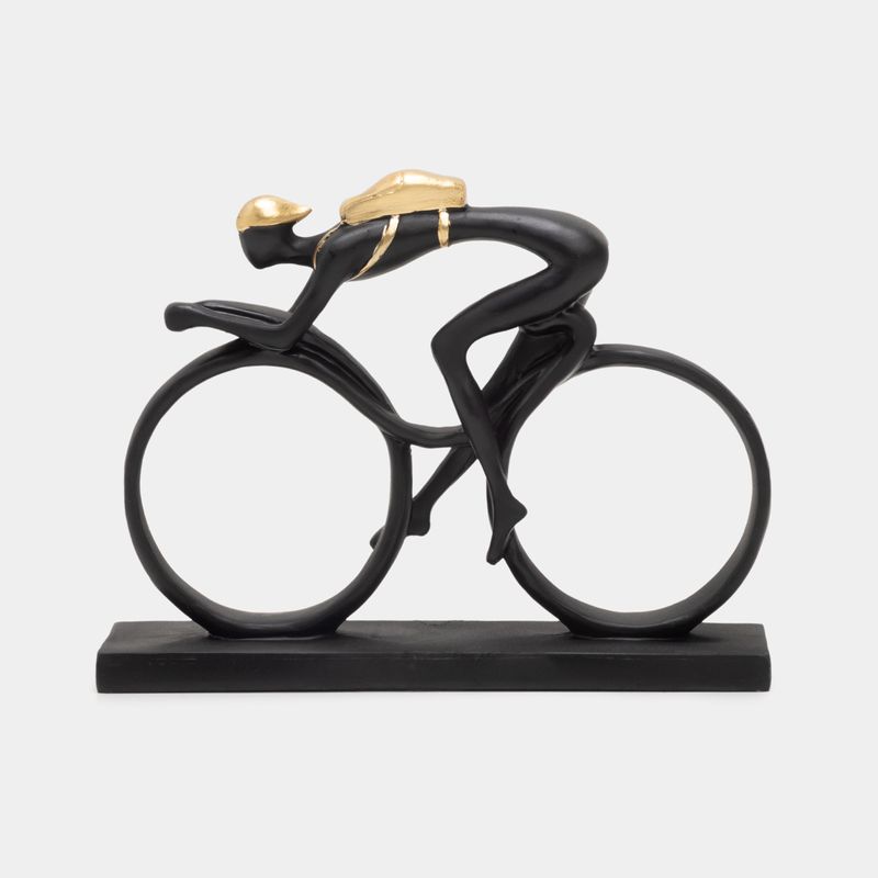 Encuentra en Panamericana gran variedad de bellos elementos y figuras decorativas para personalizar ambientes: Características • Diseño: ciclista • Color: negro con dorado • Material: poliresina • Peso: 325 gr • Medidas: 15 x 5 x 19.5 cm
