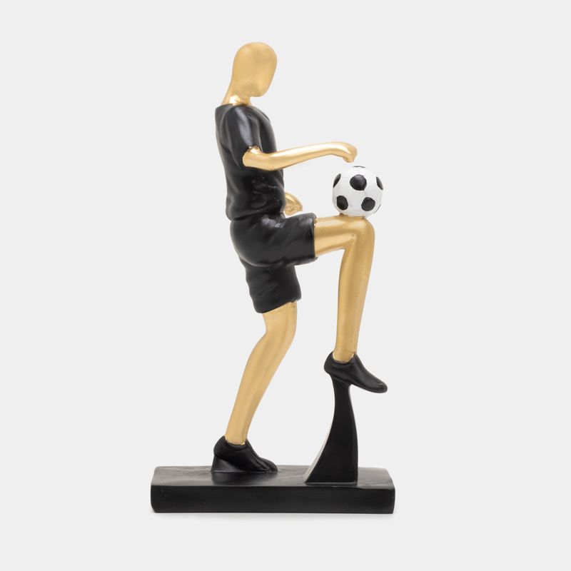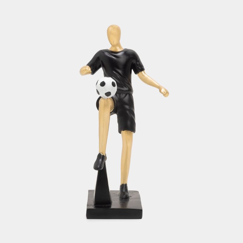 Encuentra en Panamericana gran variedad de bellos elementos y figuras decorativas para personalizar ambientes: Características • Diseño: futbolista • Color: negro con dorado • Material: poliresina • Peso: 588 gr • Medidas: 25.3 x 7.4 x 13.1 cm