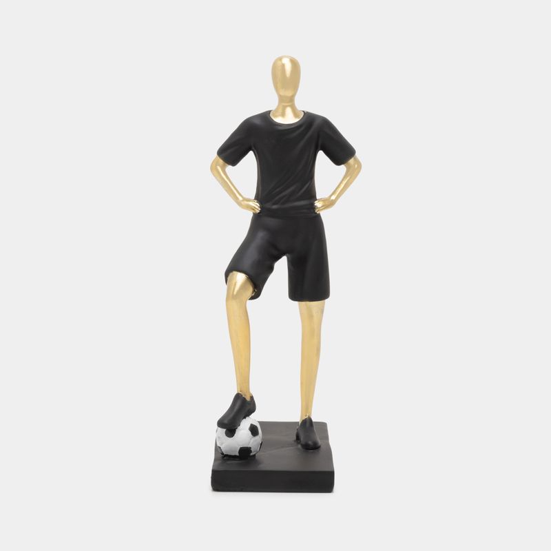 Encuentra en Panamericana gran variedad de bellos elementos y figuras decorativas para personalizar ambientes: Características • Diseño: futbolista • Color: negro con dorado • Material: poliresina • Peso: 512 gr • Medidas: 25.5 x 7.4 x 13 cm