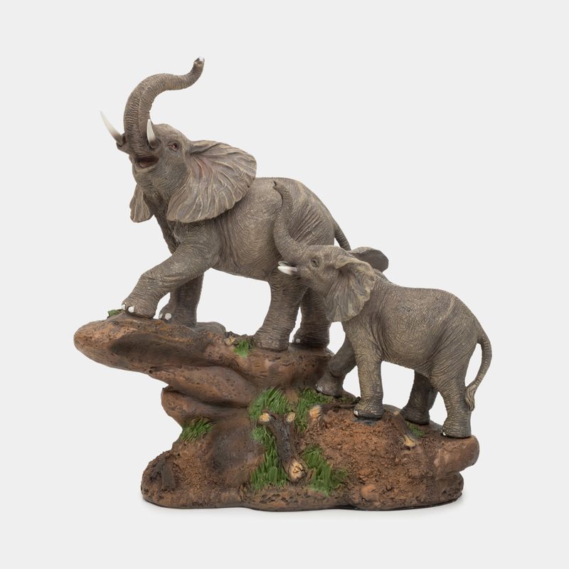 Panamericana tiene gran variedad de figuras decorativas para que personalices los estilos de tus espacios: Características: • Diseño: elefantes en roca • Material: poliresina • Mediadas: 26 x 24 x 12 cm • Peso: 1098 gr