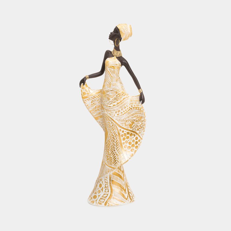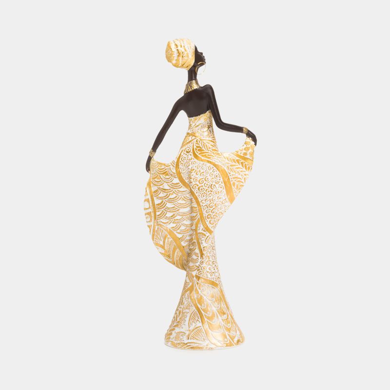 • Diseño: mujer con vestido blanco con dorado