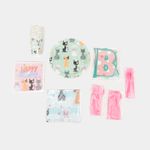 • Los platos, servilletas, vasos y la guirnalda son en papel, demás elementos que componen el kit son fabricados en plástico.