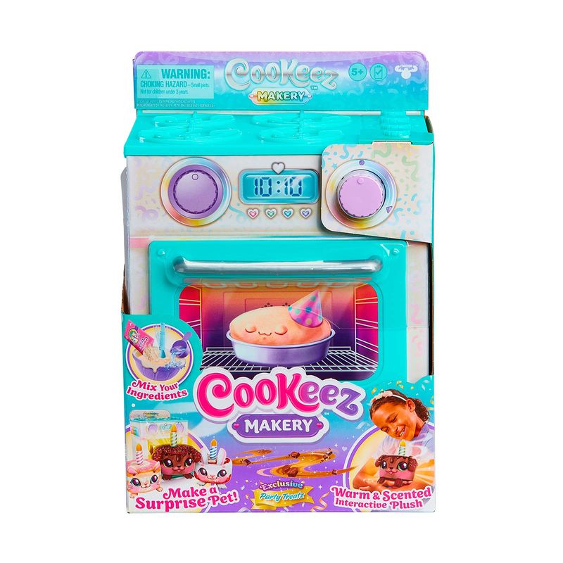 Cookeez Makery te sorprenderá a ti y a tu hijo al hornear un peluche sorpresa para su mejor amigo. Al abrir la puerta del horno, descubrirán su propio peluche interactivo, cálido y perfumado, con la forma de un delicioso dulce horneado. El horno Cookeez Makery Party Treatz viene con todo lo necesario para que los niños preparen un postre sorpresa. Pueden crear un perrito, un gatito o un conejito. Primero, mezclan los ingredientes. Luego, con el molde de masa y las herramientas incluidas, pueden añadirle detalles. Después, mételo en el horno y cierra la puerta. En 90 segundos, oirán un "ding". ¡Es hora de abrir el horno y conocer a un nuevo amigo! ¡Guau! Un peluche cálido y deliciosamente perfumado, con el que es interactivo jugar. ¿Qué Party Treatz crearán? Hay tres para crear: Conejito de Terciopelo Rojo, Fido de Chocolate y Cateaux de Fresa. Los niños pueden repetir el proceso una y otra vez.