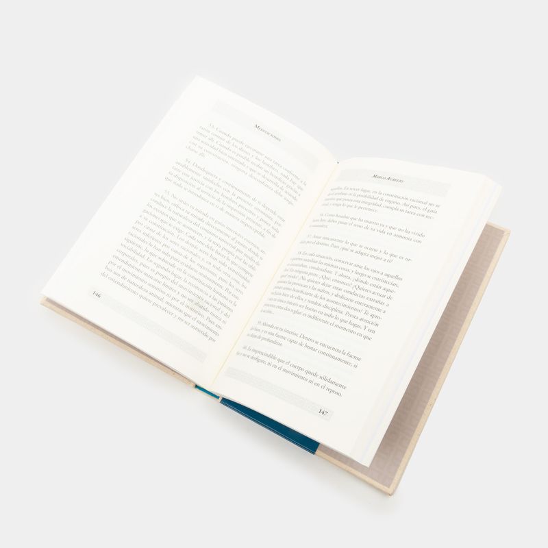 Escrita originalmente en griego, esta obra fue concebida durante los últimos años de vida del emperador romano Marco Aurelio (121-180 d.C.). El texto de Meditaciones recoge notas sobre su vida como líder y sus reflexiones sobre la filosofía estoica. Sus pensamientos abarcan temas relativos al ser humano tales como la vida, la muerte, el universo, la moralidad, la creación o los valores que deben ser fuente de inspiración para vivir y llevar una vida honorable y sincera. Con su legado escrito, Marco Aurelio pone de manifiesto todas aquellas virtudes que considera que una persona debe tener para ser un ser humano de provecho.