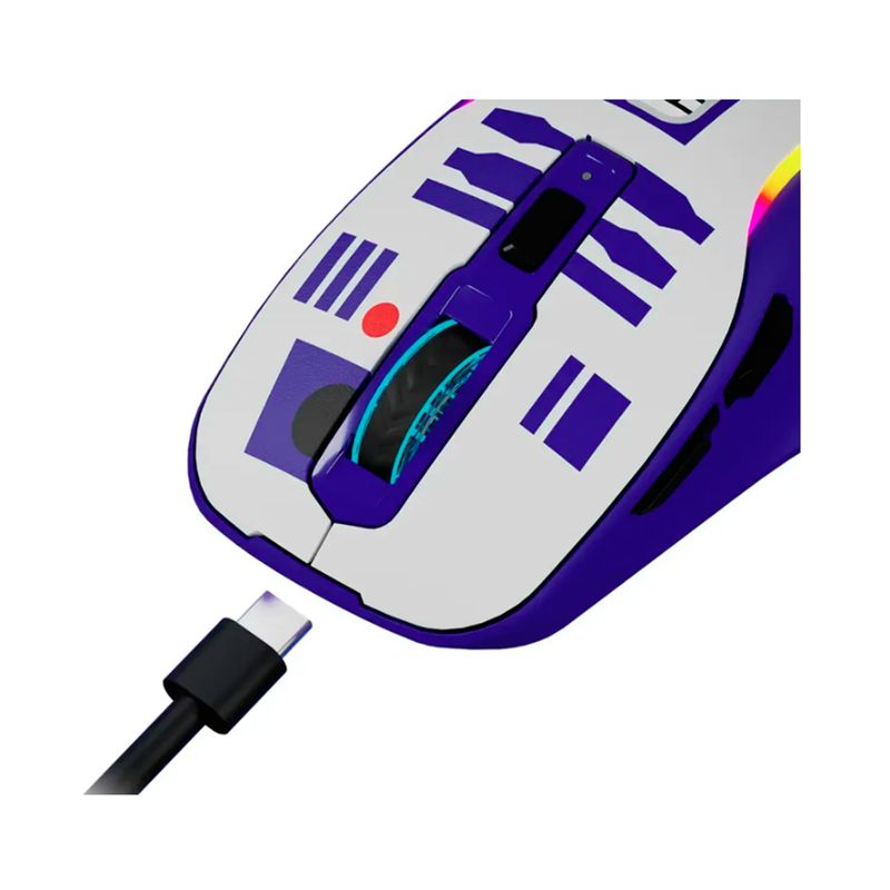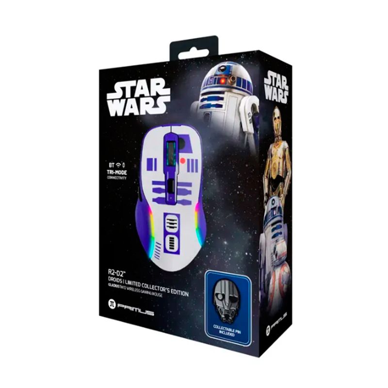 Entra en el juego con Droids, una línea exclusiva de periféricos para gamers y fans de Star Wars, inspirada en los droides más queridos de la saga. Este mouse gamer inalámbrico, con diseño temático de R2-D2, combina tecnología de alto rendimiento con detalles coleccionables que rinden homenaje a uno de los héroes más icónicos de la galaxia. Con conectividad trimodo, respuesta ultrarrápida, sensor óptico gaming-grade ultrapreciso de 10.000 dpi, retroiluminación RGB y switches de alta durabilidad. Ofrece una experiencia de juego extraordinaria para quienes viven su pasión por Star Wars en cada detalle, ya sea que estés luchando por las puntuaciones más altas o simplemente mostrando tu lealtad a la rebelión, este mouse está diseñado para impresionar.