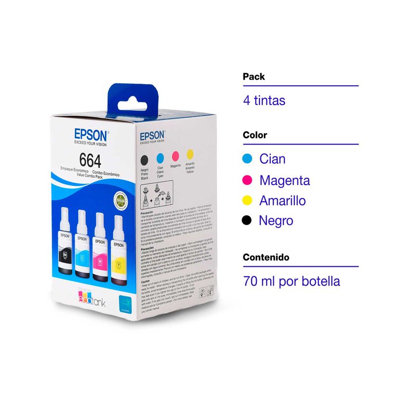 Multipack de tinta Epson T664, 4 botellas de 70 ml cada una