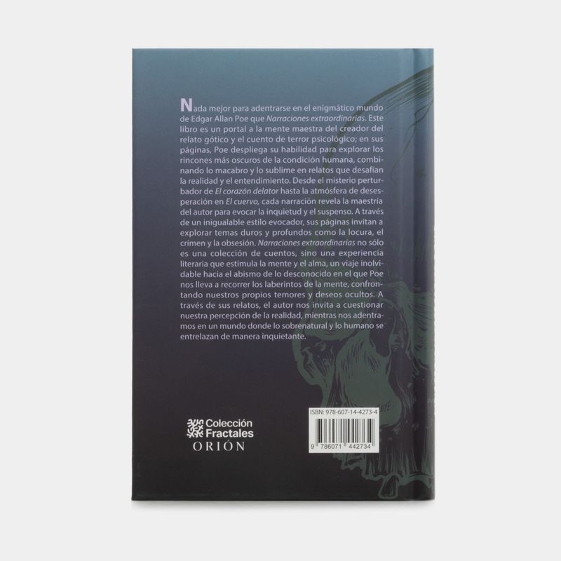 Nada mejor para adentrarse en el enigmático mundo de Edgar Allan Poe que Narraciones extraordinarias. Este libro es un portal a la mente maestra del creador del relato gótico y el cuento de terror psicológico; en sus páginas, Poe despliega su habilidad para explorar los rincones más oscuros de la condición humana, combinando lo macabro y lo sublime en relatos que desafían la realidad y el entendimiento. Desde el misterio perturbador de El corazón delator hasta la atmósfera de desesperación en El cuervo, cada narración revela la maestría del autor para evocar la inquietud y el suspenso. A través de un inigualable estilo evocador, sus páginas invitan a explorar temas duros y profundos como la locura, el crimen y la obsesión. Narraciones extraordinarias no sólo es una colección de cuentos, sino una experiencia literaria que estimula la mente y el alma, un viaje inolvidable hacia el abismo de lo desconocido en el que Poe nos lleva a recorrer los laberintos de la mente, confrontando nuestros propios temores y deseos ocultos.. A través de sus relatos, el autor nos invita a cuestionar nuestra percepción de la realidad, mientras nos adentramos en un mundo donde lo sobrenatural y lo humano se entrelazan de manera inquietante.
