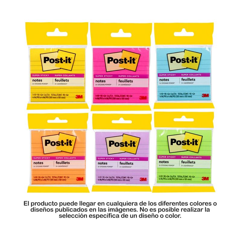 Notas adhesivas de 10 x 10 cm x90 hojas rayadas (surtidas)