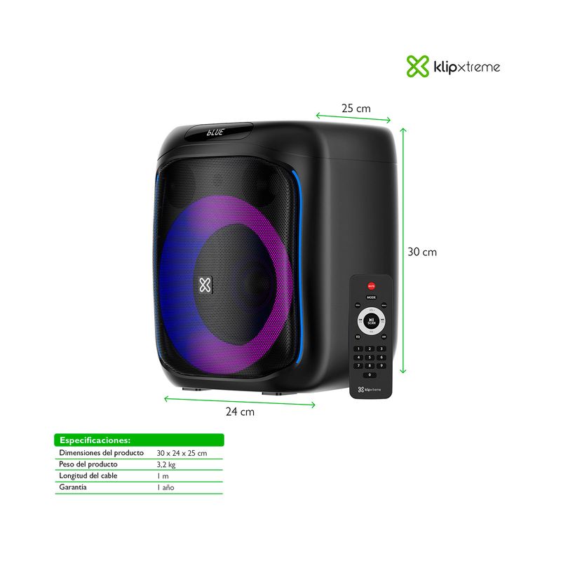 Te presentamos el BoomBlaster, el más grande y potente de la familia de parlantes BoomBlaster de Klip Xtreme, capaz de generar 1800 watts de rotunda potencia. Esta bestia portátil desata graves atronadores y luces vibrantes que puedes llevar a cualquier parte. Compatible con Bluetooth® y con un estilo recio y batería recargable, el BoomBlaster brinda la mejor experiencia en cualquier lugar. ¡Sube el volumen a niveles delirantes y diviértete con un altavoz hecho para fiestas inolvidables!