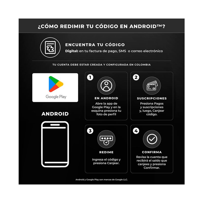 • Válido para canje únicamente en Google Play Store de Colombia.
