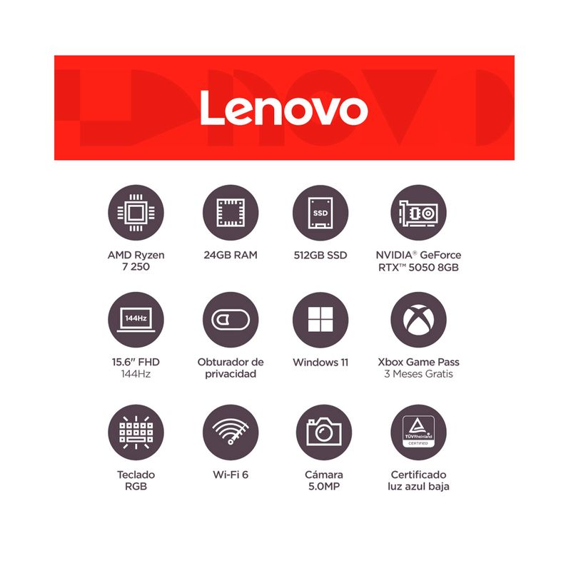 • Tarjeta gráfica: NVIDIA GEFORCE RTX 5050 8 GB