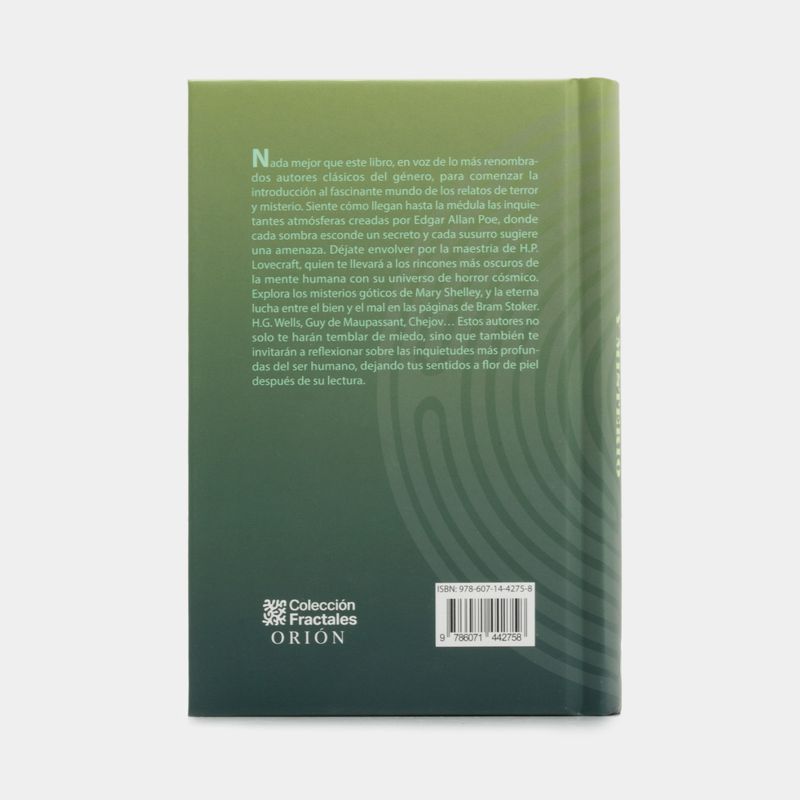 Nada mejor que este libro, en voz de lo más renombra dos autores clásicos del género, para comenzar la introducción al fascinante mundo de los relatos de terror y misterio. Siente como llegan hasta la médula las inquie tantes atmósferas creadas por Edgar Allan Poe, donde cada sombra esconde un secreto y cada susurro sugiere una amenaza. Déjate envolver por la maestría de H.P. Lovecraft, quien te llevará a los rincones más oscuros de la mente humana con su universo de horror cósmico. Explora los misterios góticos de Mary Shelley, y la eterna lucha entre el bien y el mal en las páginas de Bram Stoker. H.G. Wells, Guy de Maupassant, Chejov... Estos autores no solo te harán temblar de miedo, sino que también te invitarán a reflexionar sobre las inquietudes más profundas del ser humano, dejando tus sentidos a flor de piel después de su lectura.