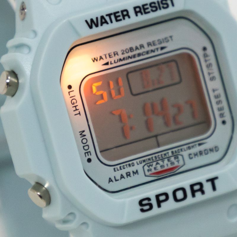 • Funciones: cronometro, fecha, alarma y luz de diferente color