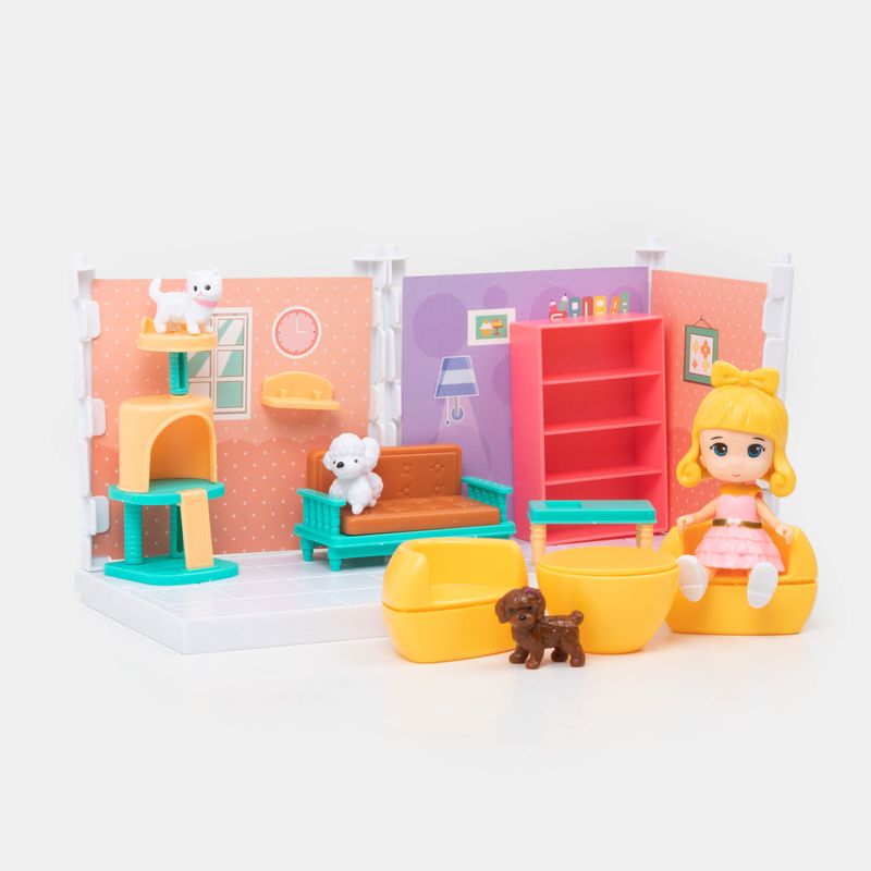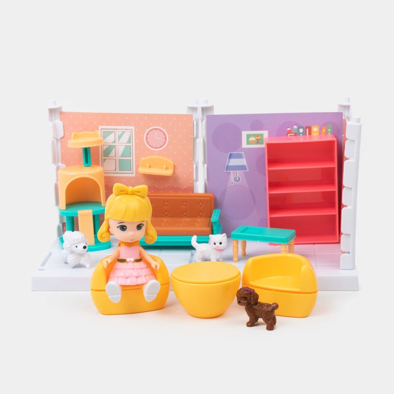 Sala armable con muñeca y mascotas