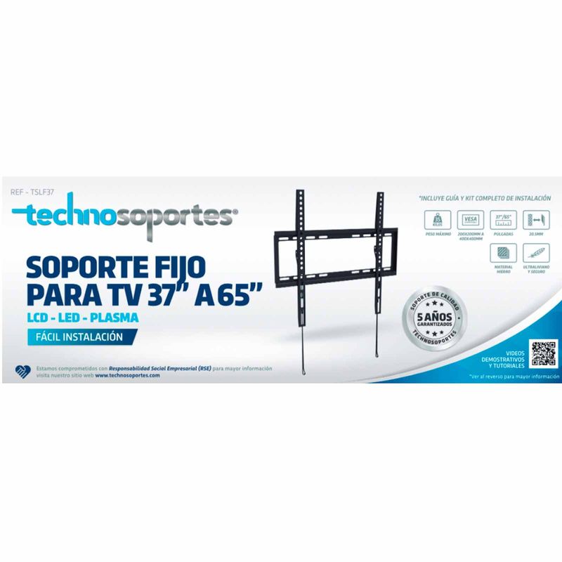 Soporte fijo para TV led o plasma, ajustable de 37" a 55"