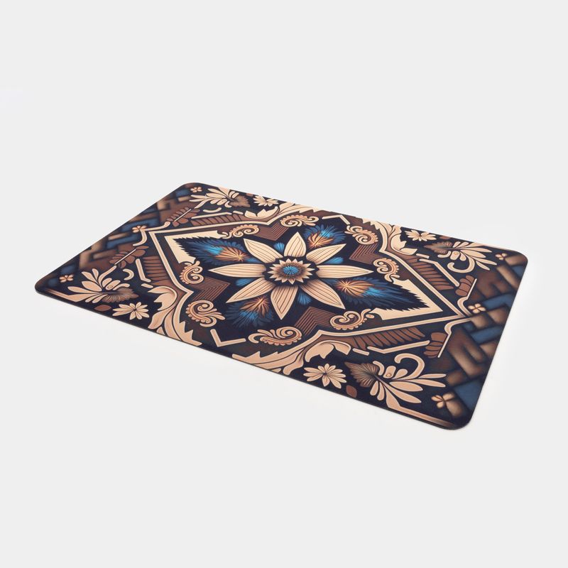 Encuentra en Panamericana hermosos y coloridos tapetes con diferentes diseños para que adornes tu hogar. Características: • Diseño: flor • Color: beige, café, negro • Material: poliéster, goma • Medidas: 37.5 x 57.5 x 0.2 cm