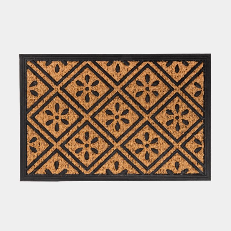 Encuentra en Panamericana hermosos y coloridos tapetes con diferentes diseños para que adornes tu hogar. Características: • Color: ocre, negro • Diseño: rombos, flores • Material: caucho, fibra de coco • Medidas: 40 x 60 x 0.5 cm