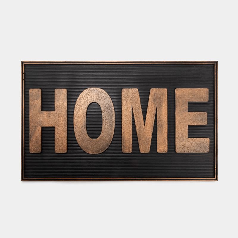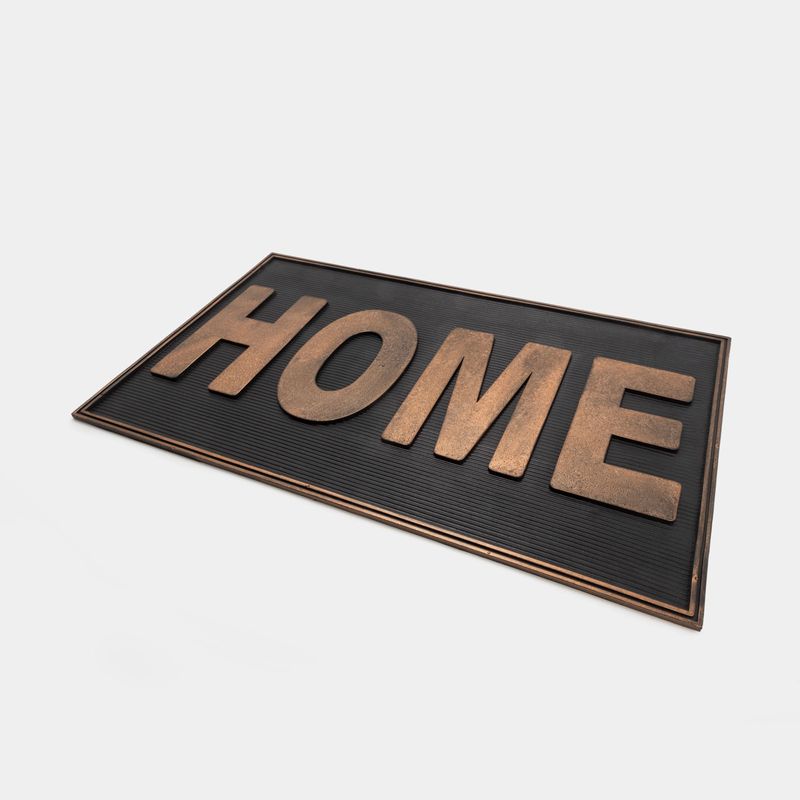 Encuentra en Panamericana hermosos y coloridos tapetes con diferentes diseños para que adornes tu hogar. Características: • Diseño: Home • Color: negro, cobre • Material: caucho • Medidas: 45.5 x 76 x 1 cm