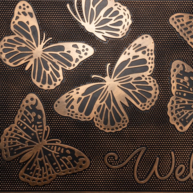Encuentra en Panamericana hermosos y coloridos tapetes con diferentes diseños para que adornes tu hogar. Características: • Diseño: mariposas • Color: cobre • Material: caucho • Medidas: 46 x 76 x 0.6 cm
