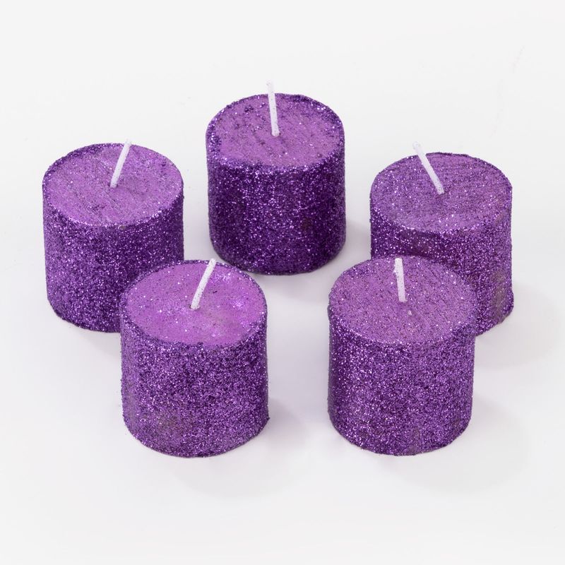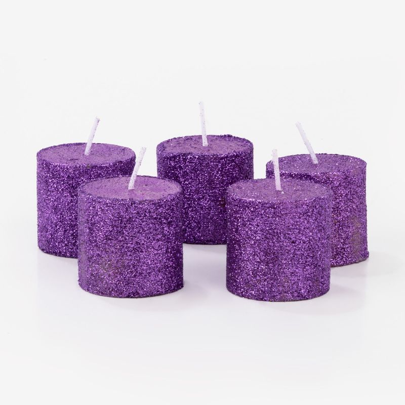 Ponle a tu hogar el color y estilo que más te guste con la decoración de Navidad disponible en Panamericana. Características: • Medidas aproximadas: 4 x 4 cm • Diseño: cilíndricas escarchadas • Color: morado • Peso: 220g • Contenido: 5 unidades